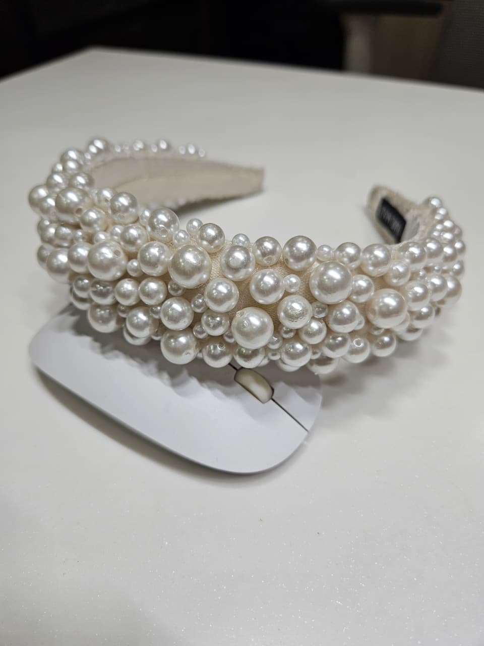 Exquisite hand-beaded white fabric, embodying refined elegance with timeless sophistication.